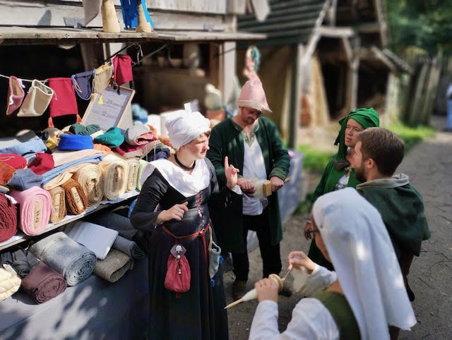 Sophie Dillen, beter bekend in de re-enactmentwereld als Maiden Minne, houdt zich al meer dan tien jaar intensief bezig met middeleeuwse kledij en textielproductie. Haar kennis en passie deelt zij zowel via haar marktkraam op historische evenementen als online viamaidenminne.com. In Archeon neemt zij het publiek mee naar de late middeleeuwen, om de evolutie van mode te illustreren.